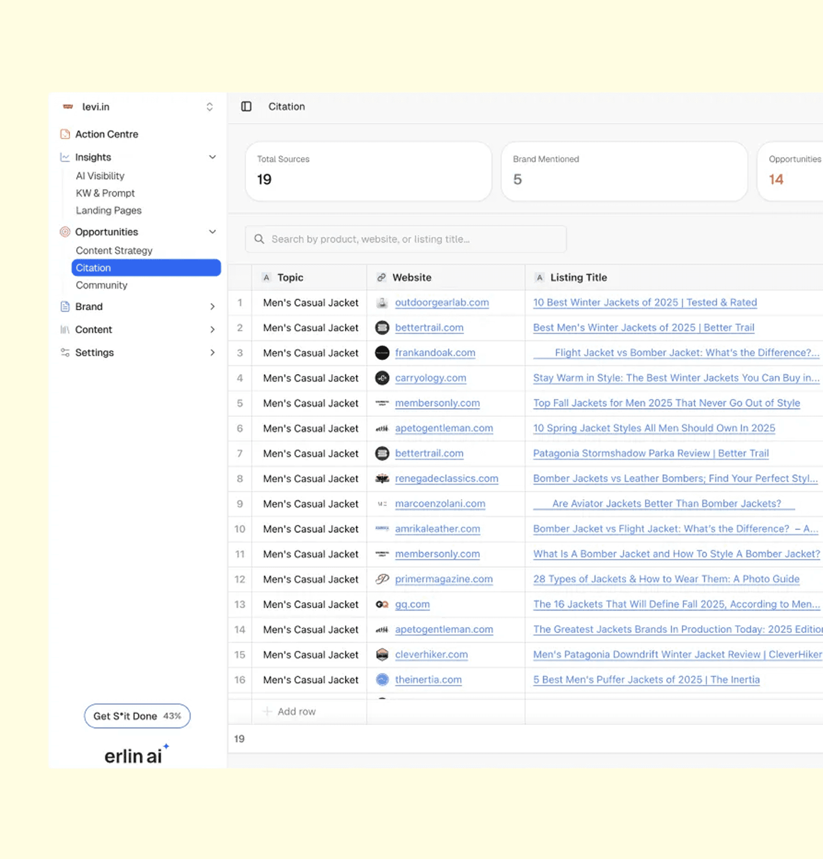 Erlin remembers your voice settings. Define tone, personality, preferred words, and hard stops once. AI applies consistent voice to every brief and draft. Four writers sound like one brand.