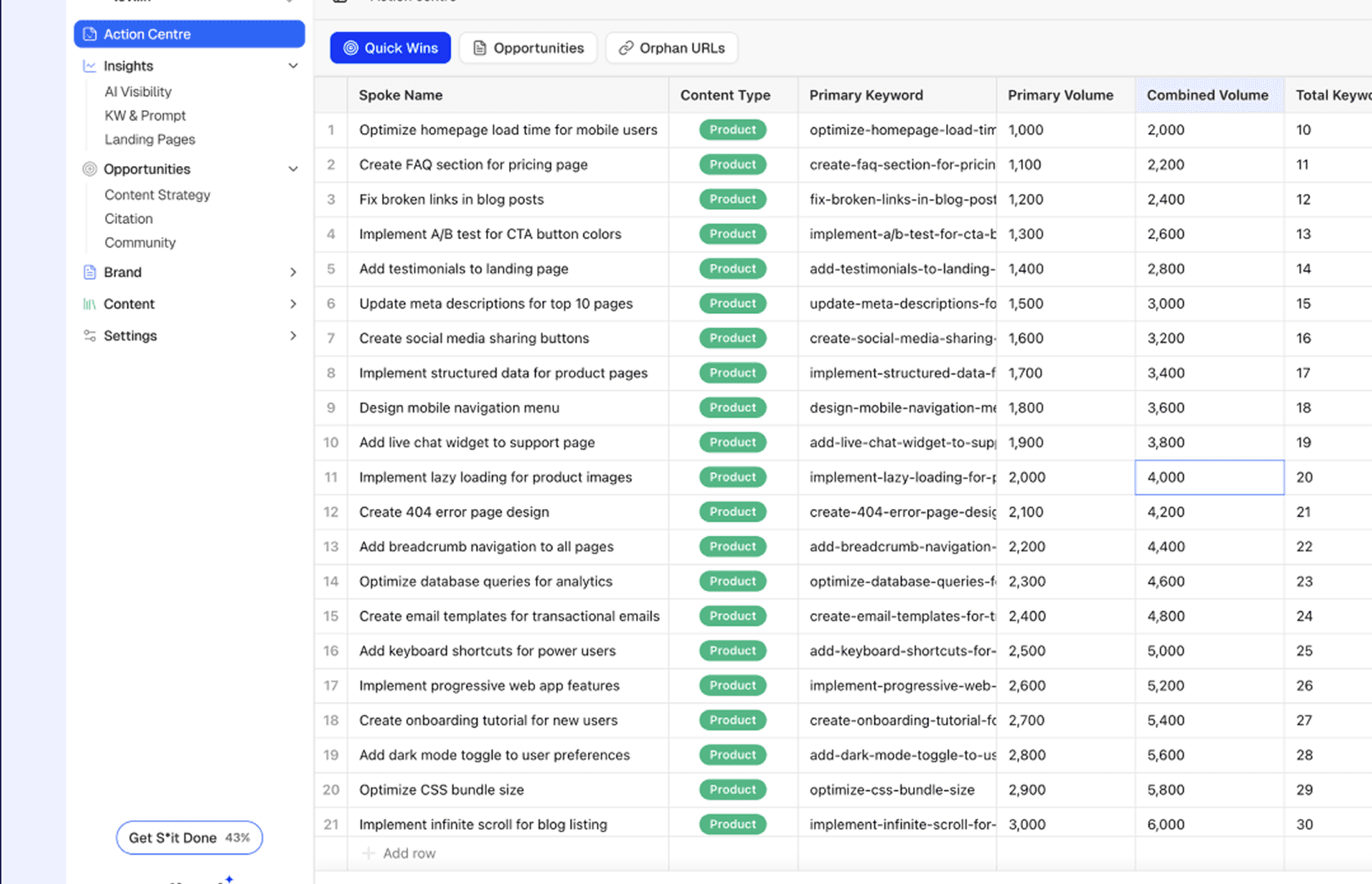 Monitor brand mentions and track visibility changes over time. See the impact of content updates on your AI search appearance.