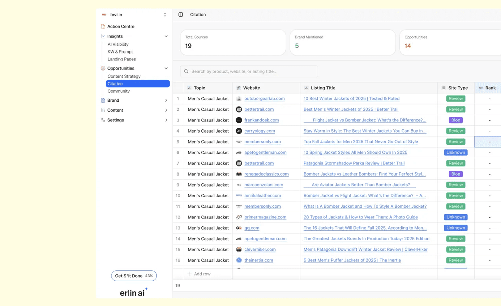 Track where your brand is discussed but not linked. Prioritize outreach based on source authority and citation frequency.