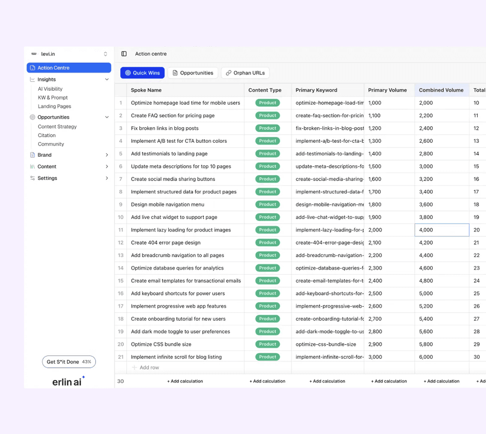 AI handles research, builds briefs from opportunity data, and drafts content in client brand voice. Your team reviews and polishes. Agencies report 3x to 4x delivery increases without new headcount. Opportunities convert to tasks automatically. Workflows run end to end while you maintain quality control. Scale client delivery without scaling team size.